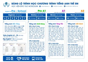 • Chương trình Tiếng Anh Tiểu Học là chương trình dành cho các bạn học từ lớp 1 đến lớp 5. Đối với trẻ em trong độ tuổi này, việc sử dụng Ngoại ngữ vô cùng quan trọng và cần thiết. Khóa học tích hợp các phương pháp giáo dục khơi gợi sự hứng thú giúp học sinh không chỉ dừng lại ở việc học tiếng Anh mà còn tiến xa hơn trong việc dùng tiếng Anh để học kiến thức.
